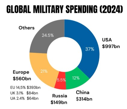 - The first is defence. Europe already spends enormous sums on defence (roughly €560 billion annually when including the UK and Ukraine) yet remains dramatically inefficient. With nearly thirty armies and over a hundred different weapons systems, Europe achieves barely a fraction of the operational effectiveness of the United States or China, which rely on around twenty‑five systems each. Duplication, not under‑spending, is the real problem.